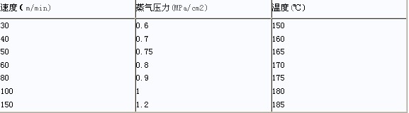 瓦楞紙板生產線的速度和蒸氣壓力及溫度的關系(見表)